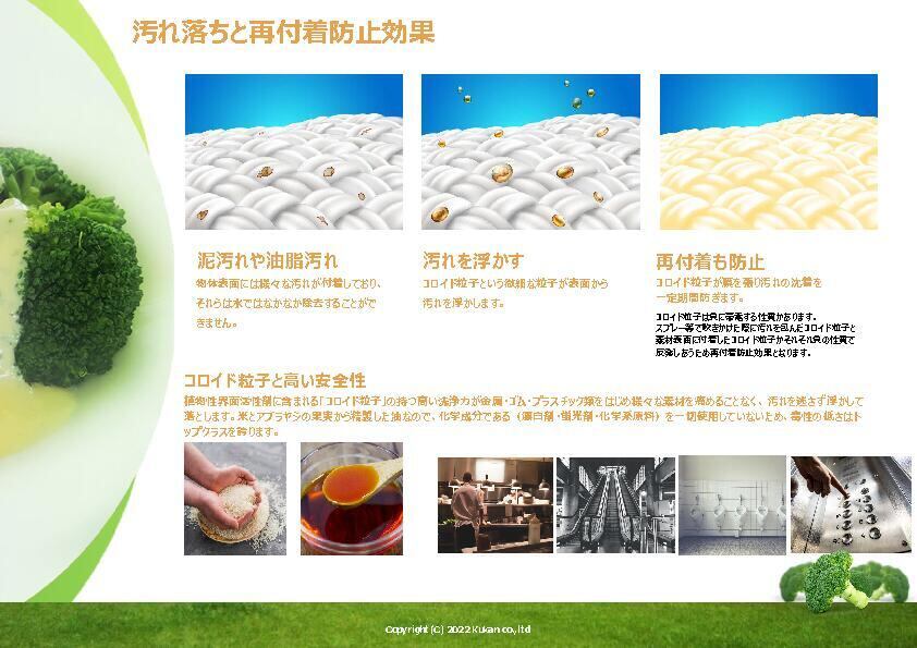 取り囲まれた汚れは、再び結合したり表面に沈着することはできないため汚れの再付着防止効果もあります。