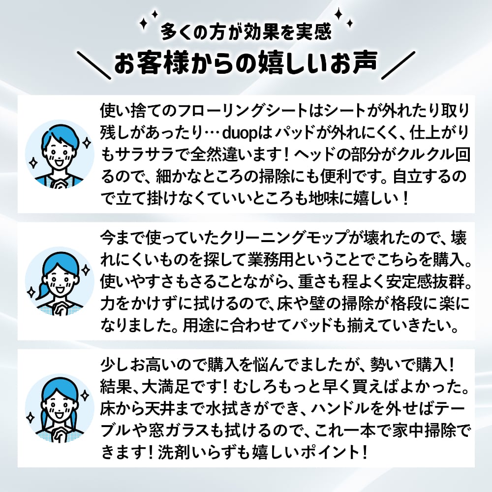・手で持って拭いた場合に比べ、接地面積が広いので効率的です。